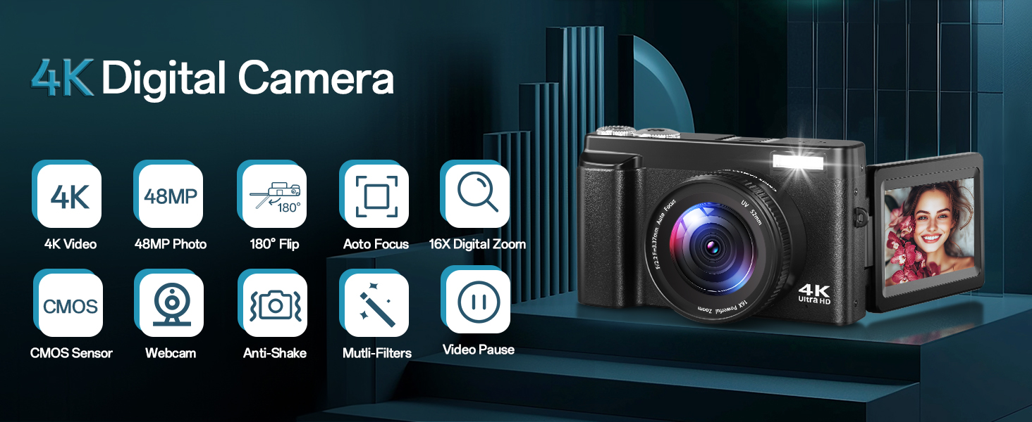 Digital Camera 4K, 48MP 16X Autofocus Digital Zoom Photo