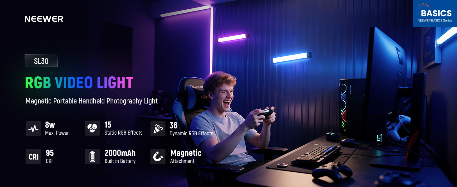 NEEWER BASICS 12″ Magnetic RGB Light Wand, 2700K/4000K/6500K CRI95 8W LED Dimmable Handheld Tube Light Stick with 51 RGB Modes 2000mAh for YouTube TikTok Camera Streaming Studio Video Recording, SL3