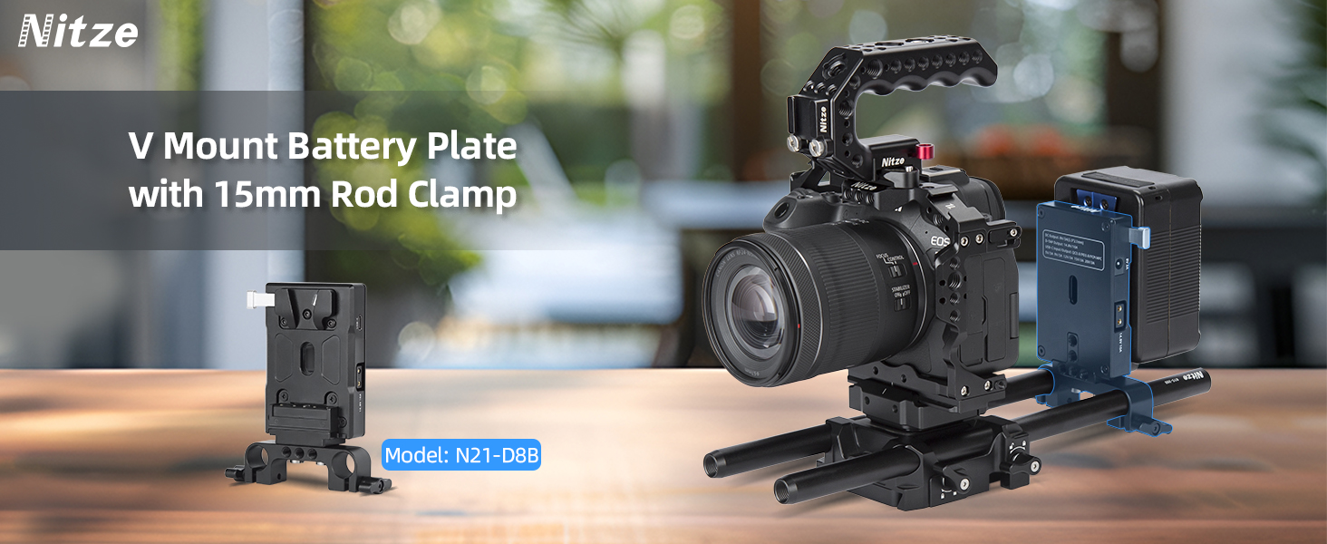 Nitze V Mount Battery Plate with 60W USB-C Input/Output (PD 3.0), DC (8V/3A), D-tap (14.8V/10A) Output and 15mm Rod Clamp for Camera Power Supply – N21-D8B