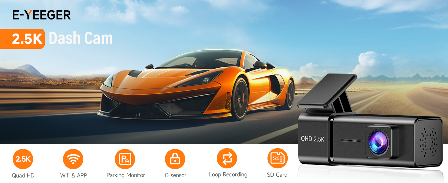 Dash Cam 2.5K WiFi Dash Camera for Cars, 1.47” IPS Screen Dashcam with App, Front Car Camera, G-Sensor, Loop Recording, Night Vision, 24H Parking Mode, 32G SD Card Included, Support 256GB Max