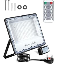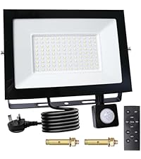 DoRight 100W Security Lights Outdoor Motion Sensor, 5000LM PIR Floodlight with Remote Control IP66 Waterproof Plug in Motion Sensor Outdoor Wall Light Cool White 6000K for Garden, Backyard, Garage