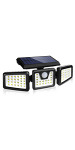 KIBTOY 156LED Solar Security Lights, Outdoor Solar Wall Light with Motion Sensor, 3 Adjustable Heads, 270° Wide Lighting Angle, IP65 Waterproof [Energy Class A]