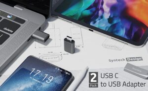 USB C to USB Adapter(2 Pack), Syntech USB-C Male to USB 3.0 Female Adapter Compatible with MacBook Pro after 2016, MacBook Air after 2018, Dell XPS and More Type C or Thunderbolt 3 Devices, Space Grey