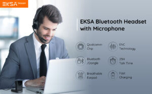EKSA H5 Bluetooth Headset with Microphone AI-Powered ENC, Wireless PC Headsets with USB Dongle [45Hrs playtime & 10M range] & Fast Charging Dock, Over Ear Computer Headsets for Laptop/Office/Teams