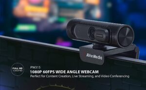 AVerMedia Live Streamer CAM 315, Webcam, 1080p/60fps Recording, Microphones, Fixed Focus, Wide Adjustable Field of View, Works with Skype, Zoom, Teams – Black
