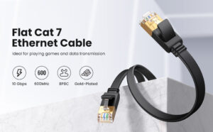 UGREEN Ethernet Cable, Cat 7 Gigabit Lan Network RJ45 High-Speed Patch Cord Flat 10Gbps 600Mhz/s FTP POE Compatible with Raspberry Pi 4,PC,Game Console,PS5, PS4,Switch,Modem,Smart TV,Patch Panel (1M)