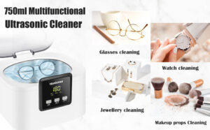 Hanience Ultrasonic Cleaner, 750ml Jewellery Cleaner 50W 43000Hz, Professional Large Capacity Ultrasonic Jewellery Cleaner with Basket and 5 Digital Timer, for Cleaning Jewelry Rings Glasses Denture