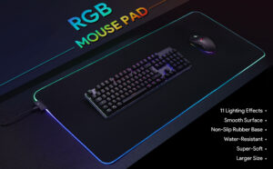 Gaming Mouse Pad, RGB Mouse Mat, 900 x 400 x 4 mm XXL Large Mousepad with 11 Lighting Modes 7 LED Colors, Mousemat for Desk, Waterproof Fabric Surface, Non-Slip Rubber Base for PC Laptop Keyboard