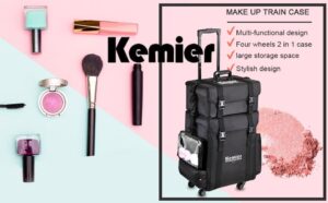 Kemier Makeup Case Professional Makeup Case Omni-Directional Wheels 2 in 1 Soft Sided Removable Cosmetic Case Travel Makeup Case Artist Makeup Train Case Cosmetic Organizer W/Storage Drawers