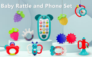 Baby Rattle Teether Toy Phone Set, Grab Shaker and Spin Rattle Toy 9PCS, Infant Newborn Baby Toys 6 to 12 Months with Storage Box, Infant Teething Toys for Toddlers Boys Girls