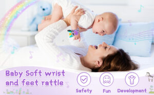 Baby Wrist and Ankle Rattles Toys – Soft Newborn Foot Finder Sock Set Hand and Feet Rattles for Babies Sensory Developmental Arm Wristband Rattle Strap Toy for 0 – 12 Months Infant Gif