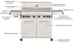 CosmoGrill Outdoor Barbecue 6+2 Platinum Stainless Steel Gas Grill BBQ (Silver With Cover)