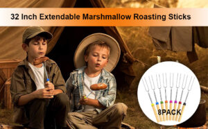 Newthinking Marshmallow Roasting Sticks, 32 Inch Extendable Telescoping Roasting Sticks Forks for Fire Pit and BBQ Campfire Party, 8 Pack