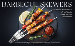 Skewers for Grilling,SANDUBY 304 Stainless Steel Kabob Skewers with Push Slider,43cm/17inch Long Flat Kebab Skewers,Barbecue Shish Kebab Sticks- for Meat,Shrimp,Chicken,Veggie(8Pcs)