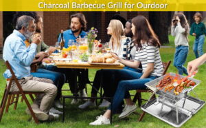 Portable BBQ Grill Stainless Steel Barbecue Grill Folding Charcoal Barbecue Fire Faster Easier Outdoor Travel BBQ Charcoal Grill Perfect for Camping, Garden, Picnic (with 2Pcs Oil Brush)