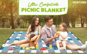 HUSTUNG Picnic Blanket,Large Picnic Blanket 200 x 200 cm, Picnic Blanket Waterproof with 3 Layers Material, Outdoor Picnic Blankets Beach Blanket for Picnic,Beach, Park – Thicker, Foldable