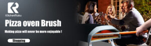 KitchenRaku Pizza Oven Brush, Pizza Stone Brush with Scraper, Barbecue Oven Grill Cleaning Tool with Wood Handle, Kitchen Outdoor Cooking Baking Accessories