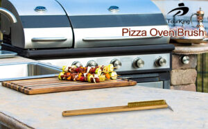 Pizza Oven Brush with Scraper, Copper Wire Pizza Stone Cleaning Brush with Wood Handle, Barbecue Grill Cleaning Tool Kitchen Pizza Oven Accessories Easily Cleans Metal Grills and Ove