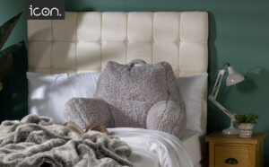 icon Teddy Bear Cuddle Cushion, Sherpa Berber Fleece Bean Filled Support Reading Pillow (Teddy Brown)