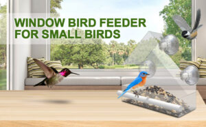 E-SMARTER Acrylic Window Bird Feeder for Small Birds Only, 15x15x6cm Window Bird Feeder with Strong Suction Cups, Seed Tray and 2 Landing Poles, Outdoor Bird Feeders for Small Birds, Wild Birds