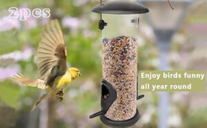 Hongmeru Hanging Bird Feeder, Bird Feeders for Small Birds, Wild Bird Feeders, Easy Refillable Outdoor Garden Bird Feeders, 2 Pack (Black)