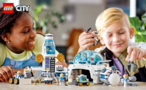 LEGO 60350 City Lunar Research Base Outer Space Set, NASA Inspired Lunar Lander, Rover & Moon Buggy with 6 Astronaut Minifigures