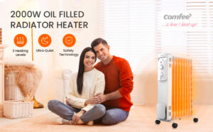 COMFEE’ Oil Filled Radiators 9 Fins 2000W, Portable Electric Heater with 3 Power Settings, Adjustable Temperature/Thermostat, Energy Efficient, Tip Over Switch and Overheating Protection, White