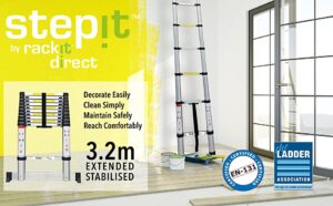 Step It 3.2m Telescopic Ladder with stabiliser bar Extendable Ladder Multi-Purpose Folding Ladder with Stabiliser | Telescopic Ladders Extendable Ladders | 150kg EN131