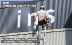 Teenza Telescopic Ladder 3.2M , Extension Ladder with Hooks and Stabilizer, Portable Loft Ladders Aluminium, Max Load 150kg/330lb