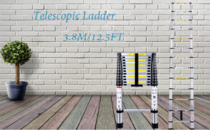 Telescopic Ladder 3.8M Multi-Purpose Folding Aluminium Telescoping Ladder Extendable Portable Loft Ladder Foldable Ladder with EN131 and CE Standard(12.5FT/3.8M)