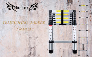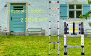 HOMIDEC Telescopic Ladder 4.1M/13.5FT Aluminium Extension Ladder with Stabilizer Bar & Detachable Hooks, Multi Purpose Extendable Loft Ladder Portable Folding Ladder, 14 Steps, Max Load 150kg, EN131