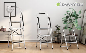 DAWNYIELD 3 Step Steel Folding Step Ladder Anti-slip with Safety Handrailstep Heavy Duty Step Stools for Adults Home Kitchen Outdoor -3 Step Ladde