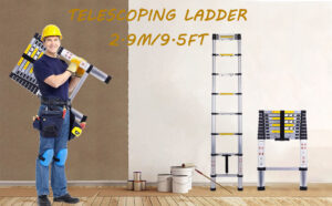Acrohome Telescopic Ladder 2.9M Multi-Purpose Aluminium Telescoping Ladder Extension Extend Portable Ladder Foldable Ladder EN131 and CE Standards