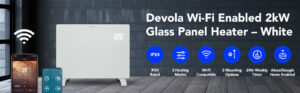 Devola WiFi Enabled Electric Glass Panel Heater 24 Hour 7 Day Digital Timer With Thermostat Remote Control Electric Radiator, Wall Mounted Or Free Standing – DVPW2000WH (2000W, White)