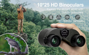 Selvim Compact Binoculars for Adults and Kids, 10×25 Mini Pocket Small Binocular with BAK4 Prism Waterproof & Lightweight HD Binocular for Bird Watching Sports Hunting Travel and Concert Black