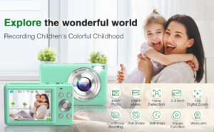 Digital Camera Autofocus,Amdeurdi Vlogging Camera Rechargeable Digital Cameras with 16X Zoom Compact Camera FHD 1080P 44MP for Beginner Photography with 2 Battery,32G Memory Card – Gree