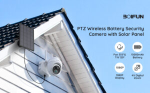 BOIFUN 360° Solar Security Camera with Solar Panel, 365 Days Non-Stop Power. Why Choose BOIFUN Solar Security Camera? With a solar panel, the BOIFUN solar powered security camera brings you 365 days of non-stop power. 100% wire-free, saving the expensive installation fee and the cost of network cable and wires. PTZ function(Pan 355° &Tilt 120° & 4X Zoom), can achieve full 360-degree coverage. 99.99% accuracy reliable 3rd Gen Human Detection and real-time alerts, provide you with 24-hour protection. High definition image 1080PHD and high decibel 2-way audio. The “CloudEdge” App is free and user-friendly. 360° All-round Protection BOIFUN wireless outdoor solar security camera allows you to remotely control the left and right/up and down rotation of the security camera outdoor wireless through the PTZ function on the APP. This device provide 120° vertical and 355° horizontal rotation range, helping to protect your home 360 degrees. Tap to zoom in to see more details. 15000mAh Rechargeable Battery Equipped with a high-efficiency solar panel for charging. You only need to charge this solar security camera once, after that, the powerful solar panel (with efficient charging speed) ensures the device can work at all hours of the day. With a 10ft/3m USB cable, the solar panel can be installed at height, for example on the eaves, and can also be rotated/adjusted at any angle (360 degree) as you wish, this ensures maximum sunlight and continuous battery charging for the PTZ camera. 100% Wireless and Easy to Install Compared to traditional cameras, the installation of the BOIFUN wireless cctv camera is very convenient. You don’t have to waste time drilling on the wall, laying power cables or network cables. You just need to install the outdoor camera in about 10 minutes. And it also makes your home tidier. In addition, this also saves installation fees and the cost of network cables and wires. 1080P HD & 65ft Night Vision BOIFUN PTZ security camera is equipped with a high-performance COMS color sensor which is giving consideration to both power consumption and resolution, the visual effect of the BOIFUN solar security camera is the best performance at 1080P level resolutions. Upgraded 4 infrared lights can capture more details, allowing you to see clearly thief’s face in 65ft meters. If some unexpected things happen, you can provide powerful evidence to the police. Multi-user Remote Real-time Viewing The battery operated security camera supports remote viewing by multiple users at the same time. As long as your smartphone downloads the “CloudEdge” App, you can easily share the battery security camera with your family by scanning the QR code. All of your family members can monitor every corner of your house at the same time. PIR Motion Detection & Real-time Alert The PTZ camera is equipped with upgraded AI human detection and PIR detection sensors that can accurately capture human movement and reduce false alarms possibly caused by insects and falling leaves. When motion is detected, a real-time alert will be sent to your phone. Tap the alert notification to check out videos and pictures anytime and anywhere. You will be alerted with all suspicious events. Support iOS and Android Devices Smart guidance for your first connection is always available on the App. Just follow the steps as instructed, scan the QR code by the solar cctv camera outdoor wireless, wait for a few seconds, and connect. The CloudEdge app on a smartphone or tablet device can control all BOIFUN solar wireless cctv camera for you to view and conduct two-way voice communication and etc. 4dBi Dual WiFi Antennas BOIFUN outdoor wifi security camera uses an upgraded 4dBi wifi enhanced antenna. It delivers more stable connectivity and better coverage (support 2.4 GHz WiFi instead of 5 GHz WiFi). Dual 4dbi antenna makes the camera with stronger and more stable network receiving capability. Able to install the battery powered outdoor camera more flexibly without being restricted by the Wi-Fi router. Encrypted Cloud and SD Card Storage BOIFUN PTZ solar powered security camera support storage in SD card and 7 days free cloud storage service. Pictures are stored in the cloud, and videos are stored in an SD card (not included, up to 128G), and you can playback on your smartphone. Support downloading event pictures and video clips on smartphones. Since the launch of the first product in Sept 2004, BOIFUN has been committing to creating the best quality security products for consumers and business owners and are highly praised by customers. BOIFUN 360° PTZ Solar Security Camera Home CCTV Camera Warm tips Support motion detection recording instead of 24/7 continuous recording. Support 2.4Ghz wifi instead of 5Ghz wifi. Support smartphones and tablets (Apple & Android). Please charge with USB before using the battery operated security camera for the first time (at least more than 12 hours). Package included 1 x PTZ Solar Security Camera 1 x Solar Panel 1 x Bracket 4 x Screws 1 x User Manual Battery Capacity 15000mAh 10400mAh 10400mAh 6700mAh Night Version Yes Yes Yes Yes Notification Method Human Detection Human Detection Human Detection Human Detection Viewing Angle 360° 130° 130° 166° Waterproof Level IP65 IP66 IP66 IP66 Control Method APP APP APP APP Support Device Cloudedge Cloudedge Cloudedge Cloudedge Check Offer Price Dimensions: 22.5 x 19.5 x 15.6 cm; 1.2 Kilograms Model: ZS-GX1S Batteries Included: 1 Lithium ion batteries required. (included) Manufacture: BOIFUN Origin: China