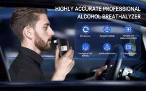 VEIPAO Alcohol Breathalyzer Tester UK Breathalysers: Portable Breathalyser with 11 Mouthpieces – Digital LCD Screen Alcohol Test Kit High Accuracy for Home Personal Professional Use