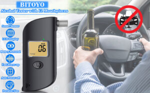 YRHWS Breathalyzer & Alcohol Tester with 12 Mouthpieces, Portable Alcohol Breath Tester Professional Breathalysers with LCD Display Digital Fast, High Accuracy