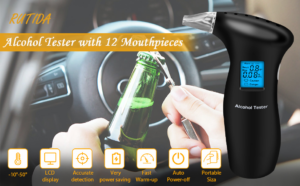 RUTIDA Breathalyzers & Breath Tester with 12 Mouthpieces, Professional Breathalysers Portable Alcohol Breath Tester, with LCD Display Digital Fast, High Accuracy