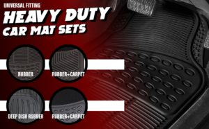FSW – Universal Car Mats – Heavy Duty, 3mm Car Floor Mat with Reinforced Rubber – Waterproof Mat, Anti Slip Car Mats Edged Black Cloth Binding – 4 Piece Rubber Car Mats