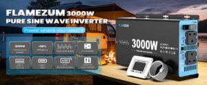 FLAMEZUM 3000w Pure Sine Wave Power Inverter DC 12V to AC 240V Voltage Converter with 2 AC Outlets,1 USB-A Port,1 USB-C Port,LCD Remote Control,for Motorhomes,Trucks,Boats,Camping,6000W Peak