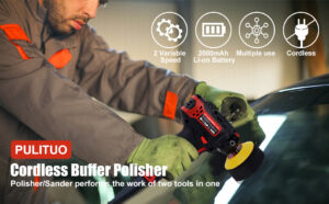 Polisher, Ginour Dual Action Car Polisher, 6 Variable Speeds 2000-6400OPM, D-Handle & Side Handle, 4 Polishing pad, 2 Carbon Brushes,150mm Base Ideal for Car Sanding, Polishing