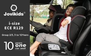 Jovikids Car Seat with ISOFIX Fix Expandable Width High Back Booster seat, 100-150cm (Group 2/3, 3 to 12 Years) i-Size ECE R129, Red