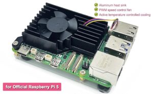 Awxlumv Active Cooler for Official Raspberry Pi 5 with 30mm PWM 4-Pin Cooling Fan Pi 5 Heatsink with Thermal Tape And Acrylic Base Plates