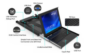 MT-VIKI 8 Port VGA KVM Switch Console Drawer Modular System with 17 inches LED LCD Display Monitor Severs 1U Rackmount USB VGA KVM Switches + 8 pack KVM Cables