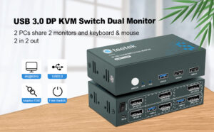 USB3.0 DisplayPort KVM Switch Dual Monitor 2 Port,4K@60Hz,USB3.0,DP KVM Switches 2 PC 2 Monitor,DP1.2,Button Control,with 4 DP Cables and 2 USB Cables