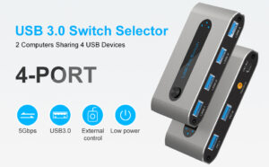 USB 3.0 Switch Selector 2 In 4 Out USB Sharing Switch for 2 Computer Sharing 4 USB Devices USB KVM Switcher Box for Mouse Keyboard Scanner Printer with 2 Pcs USB 3.0 A-A cable.