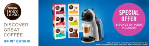 De’Longhi Nescafé Dolce Gusto Mini Me, Single Serve Capsule Coffee Machine Starter Kit, Including 6 boxes of Coffee Pods, EDG155.BG, Black & Grey