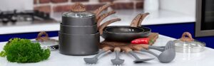 Tower Freedom T800200 13 Piece Cookware Set with Ceramic Coating, Stackable Design and Detachable Handles, Graphite, Aluminium